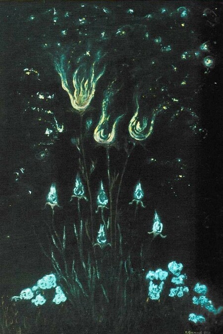 1. Б. А. Смирнов-Русецкий. Лягушка-царевна. 1985 г. 2. П. П. Фатеев. Цветы, излучающие энергию. 1960 г.