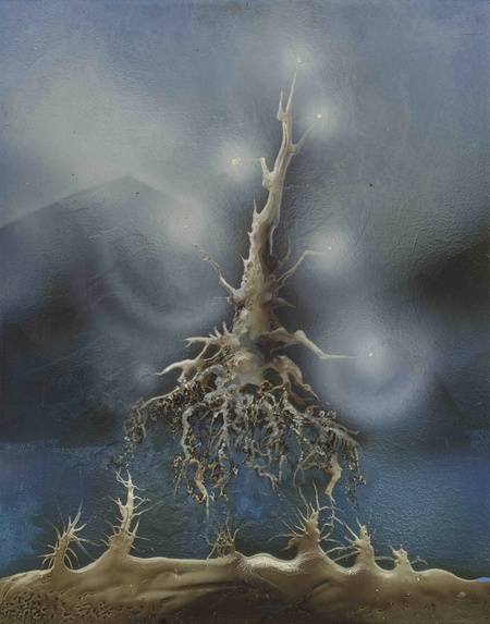 Фигура человека если и есть, то сильно растворена в других формах, вновь отсылая нас к неразрывной связи человека и мира, Вселенной, его космического начала.
