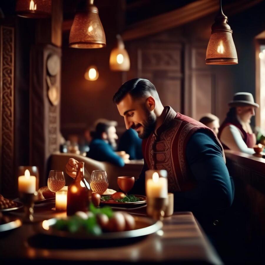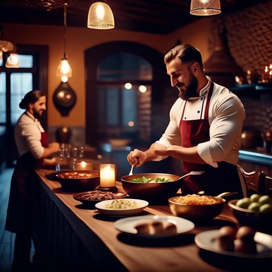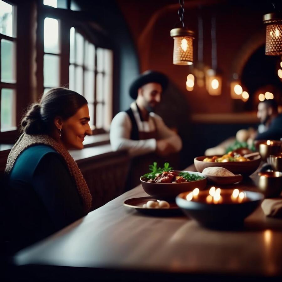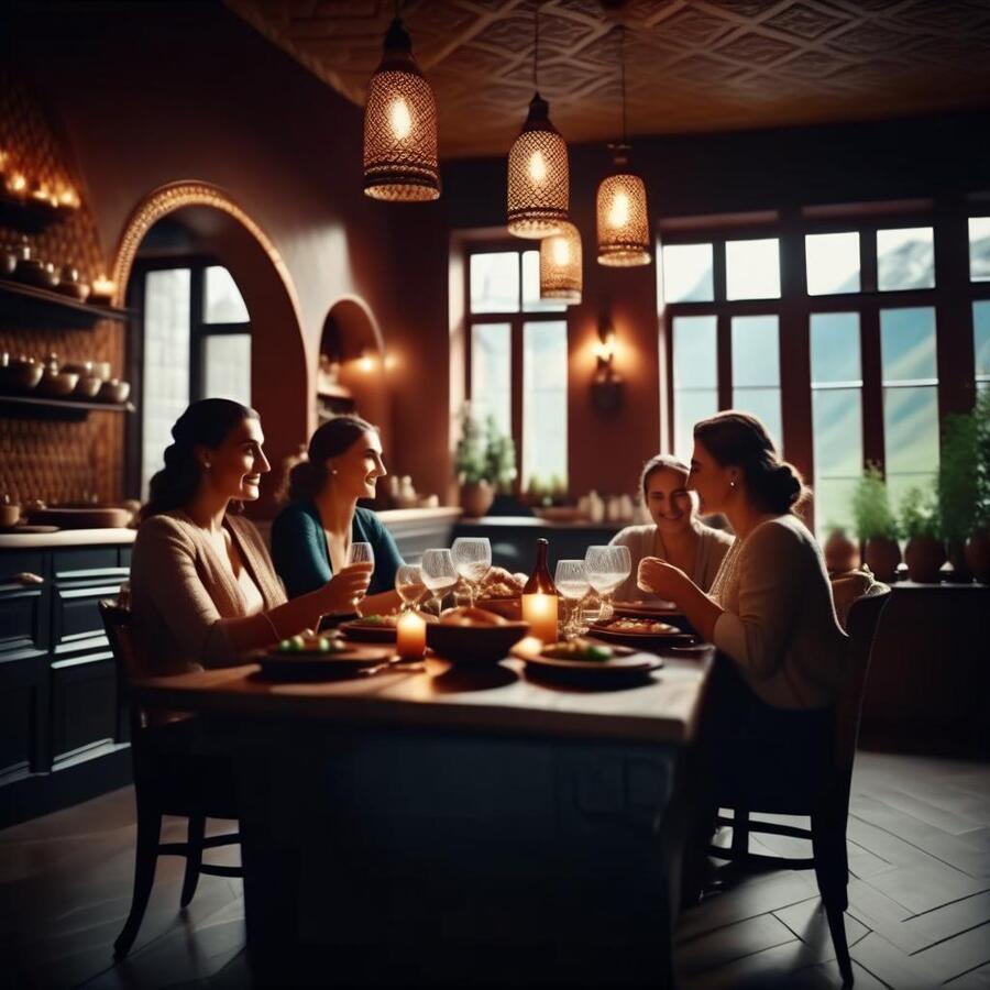 фото для рекламных постеров, создающие атмосферу уюта и тепла промпт: advertising poster for restaurant with ethnic kitchen of caucasus people image style — Cinematic guidance scale — 20