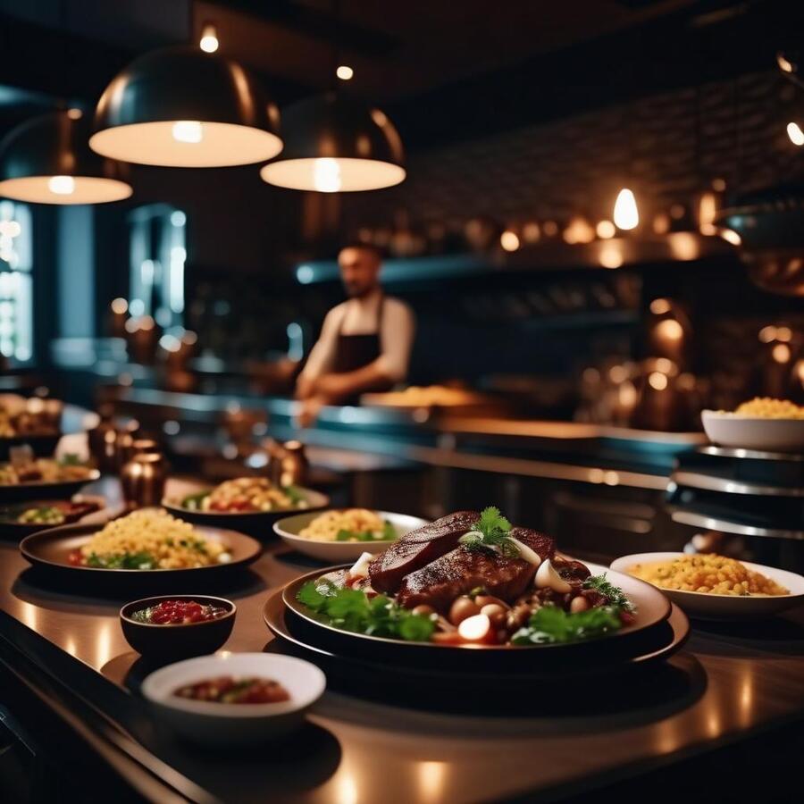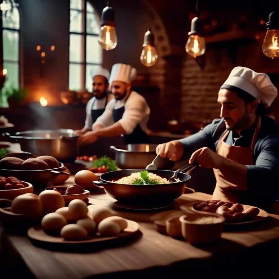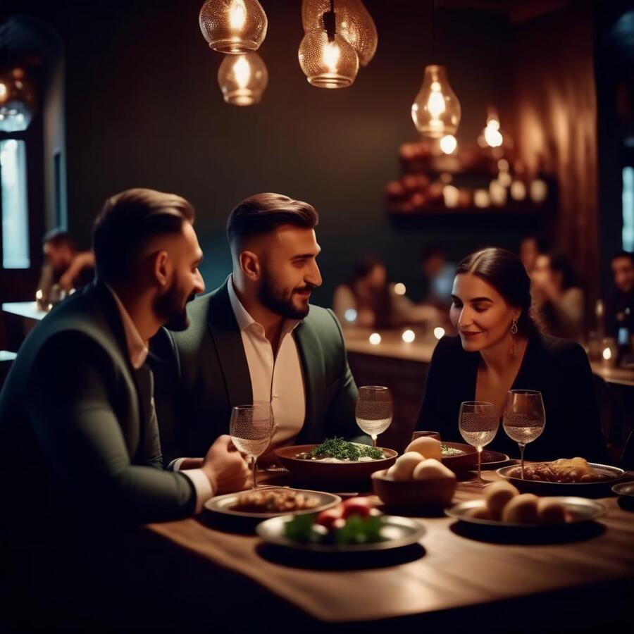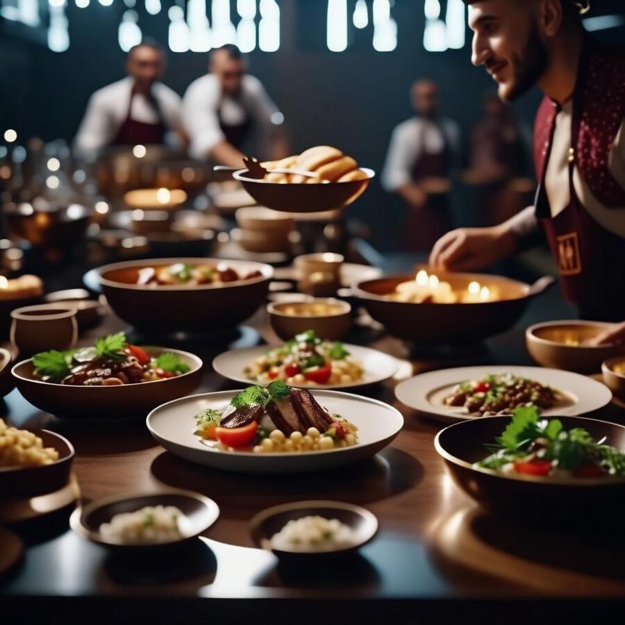 фото для рекламных постеров, создающие атмосферу уюта и тепла промпт: advertising poster for restaurant with ethnic kitchen of caucasus people image style — Cinematic guidance scale — 20