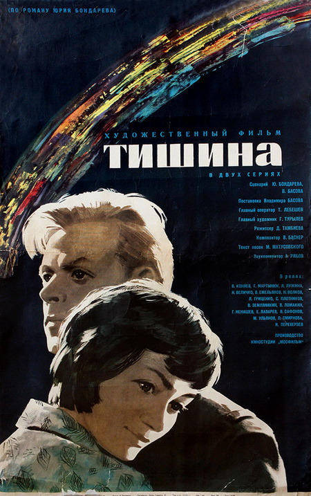 Рассмотрим фильм «Тишина» (реж. Владимир Басов, 1963 г.). Фильм является экранизацией одноименного романа Юрия Бондарева и получил главный приз I Всесоюзного кинофестиваля в 1963 г.