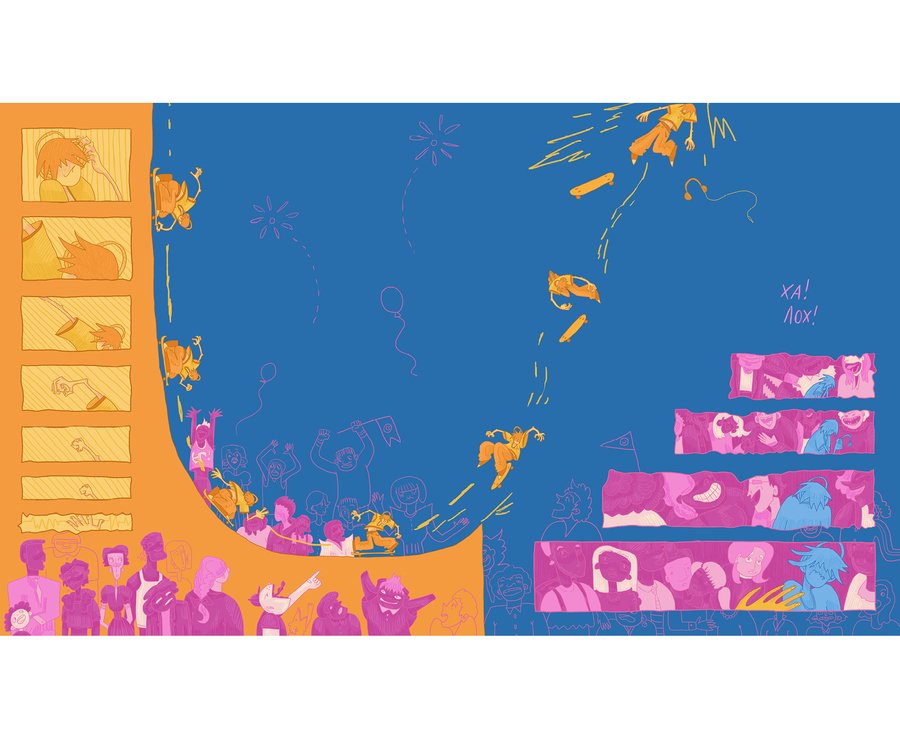 Skate and Destroy — комикс о мальчике-скейтбордисте с большими амбициями, который планирует выполнить сложный прыжок в один замечательный солнечный день на глазах у всей школы