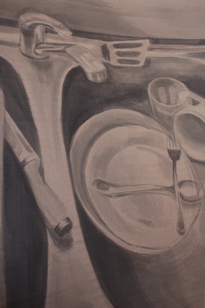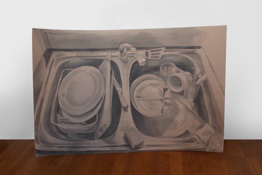 Когда я вижу раковину полную грязной посуды — передо мной задача конечная, осязаемая и комфортная — я знаю, как ее решить. Я рисую раковину по размеру больше фактической, увеличиваю масштаб задачи. Академичный подход самостоятельно диктует мне решения, эта ясность приносит комфорт, облегчение. Так я еще больше растягиваю процесс, еще больше откладываю момент, когда надо сделать что-то реальное, существенное, полезное.
