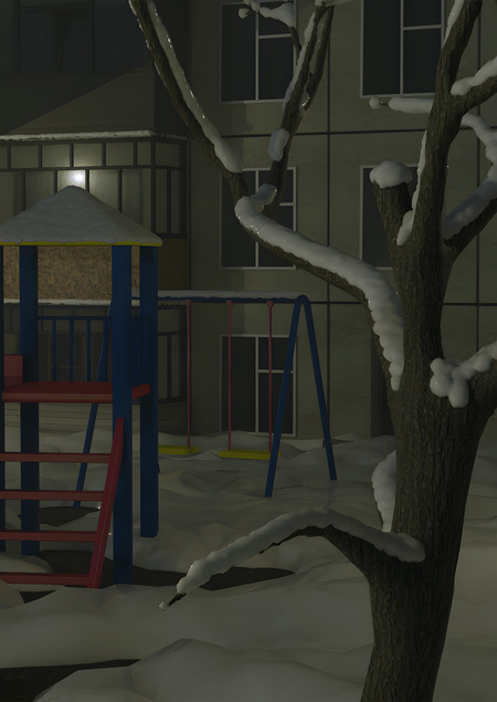Смоделированная в Blender 3D сцена, которую видит в голове твоя мама, когда на часах уже 21:01, а тебя всё ещё нет дома.