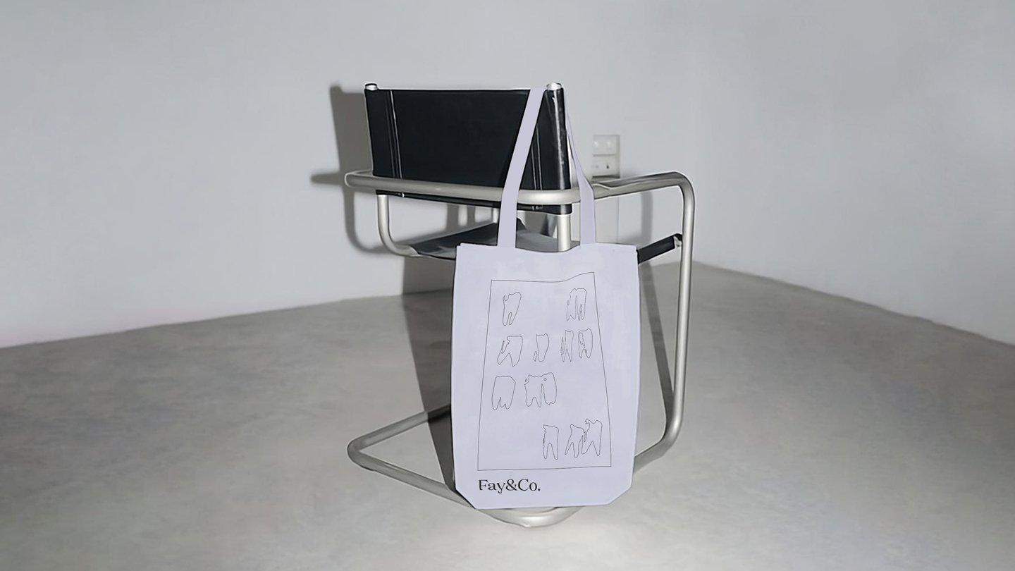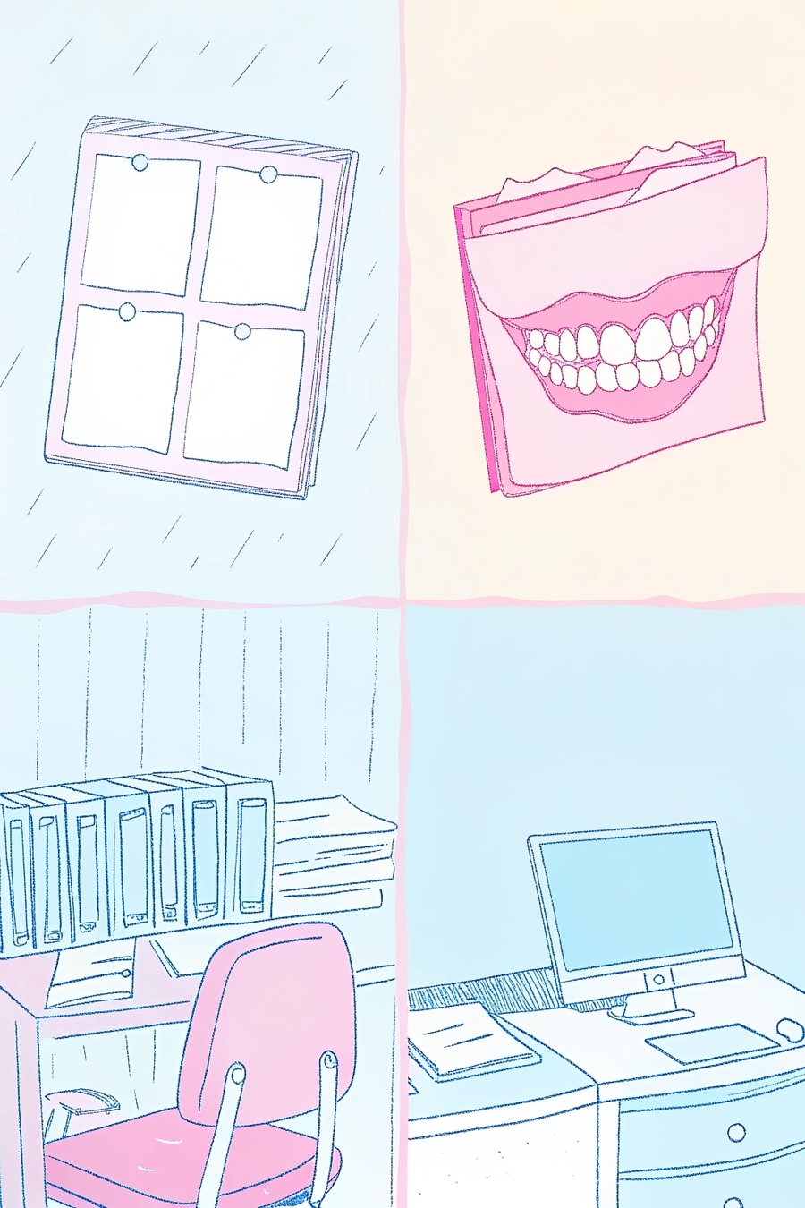 Prompt: light poster with the picture of the documents, folders, teeth and office attribution
