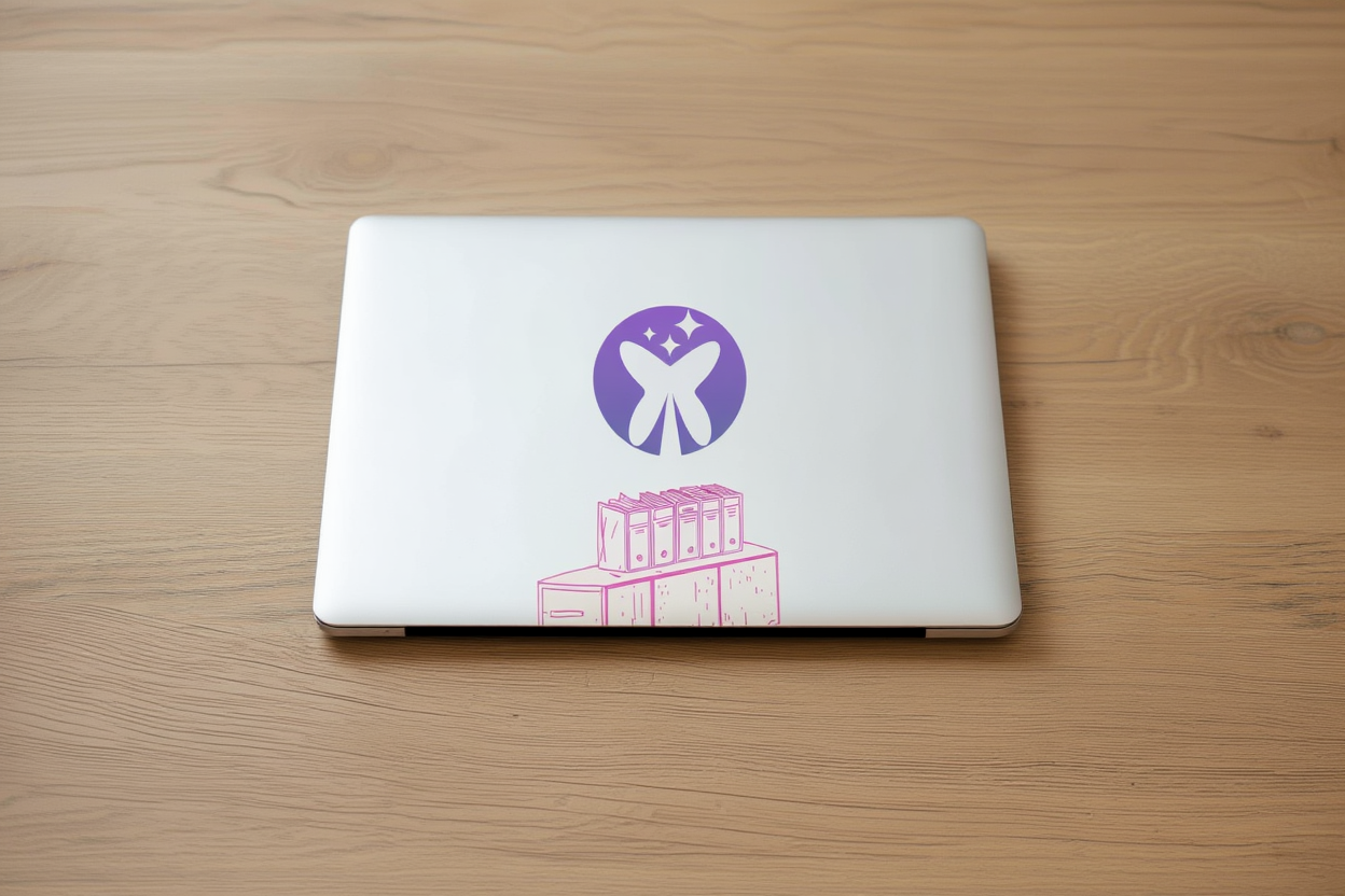 Pompt2: make a realistic mock up of a case, notebook, laptop and small box with these graphic elements and this logo