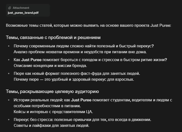 В рамках проекта по разработке айдентики и продвижения полезных пюрешек из натуральных продуктов использование искусственного интеллекта стало важным инструментом повышения эффективности контент-стратегии.