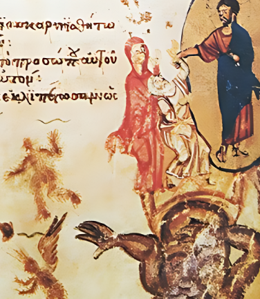 Фрагмент миниатюры с изображением первых образов в Аду. «Хлудовская псалтырь», Константинополь, середина IX в.