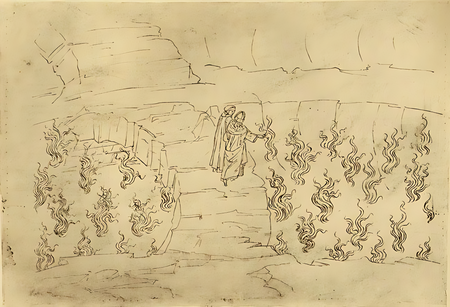 Иллюстрации Сандро Боттичелли к «Божественной комедии» Данте являются уникальной визуализацией литературного текста. Его работы становятся не просто украшением поэмы, а ответом, где на первый план выходят законы дантовского Ада.
