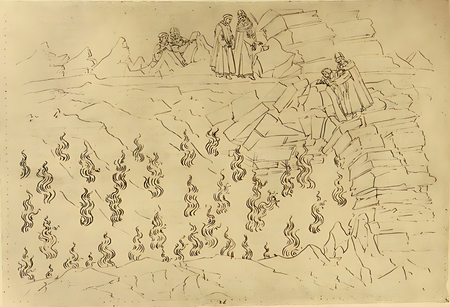 Наказание ростовщиков и содомитов. Сандро Боттичелли, иллюстрация к «Божественной комедии», 1480-1500