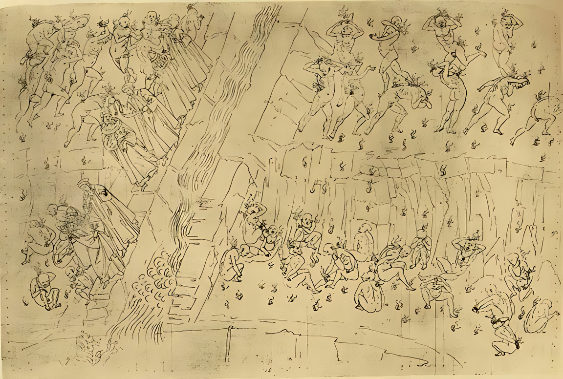 Наказание еретиков. Сандро Боттичелли, иллюстрация к «Божественной комедии», 1480-1500