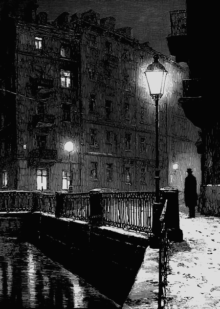 Первая строка — «Ночь. Улица. Фонарь. Аптека.» — задаёт предельно статичную, почти схематичную картину, где каждая деталь лишена развития и движения. Этот перечень предметов не образует сюжета, он фиксирует неизменный замёрзший фрагмент бытия, который и станет метафорой всей жизни.