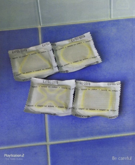 Рекламные постеры Sony PlayStation в 2000-х не менее провокационны и оригинальны. Постеры освещают несколько тем: жизнь, здоровье, телесные увечия и даже религия.