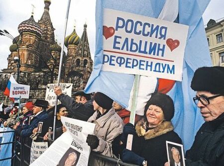 Сторонники Бориса Ельцина на Пушкинской площади в Москве, 21 апреля 1993 года