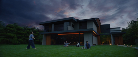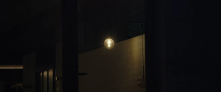 Оттенки в доме Паков наоборот, теплые и мягкие. Такая атмосфера достигается за счет мягкого естественного света из панорамного окна, а также выстроенных дизайнером точек искусственного освещения теплым светом. Мебель сделана в том числе из дерева теплых оранжево-коричневатых оттенков. Создается ощущение беспечности и безопасности в таком большом и богатом доме. Здесь нет отравы и много пространства для жизни и детских развлечений. Снаружи дома большая территория, которая также освещается прямыми лучами солнца.