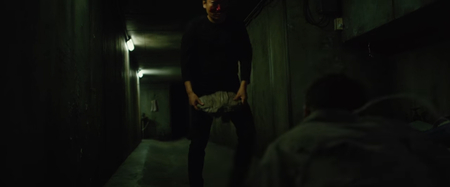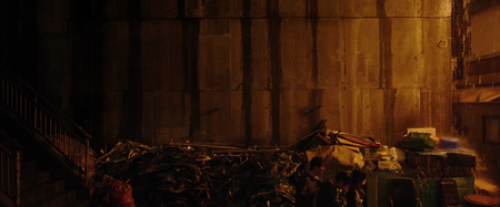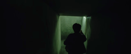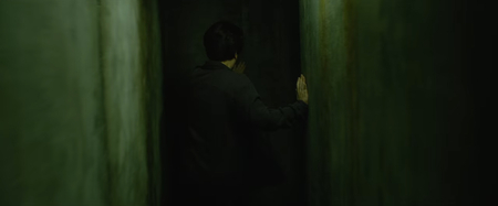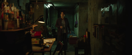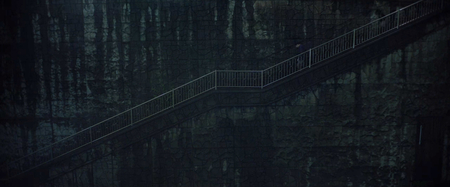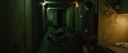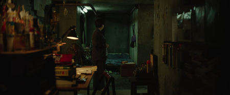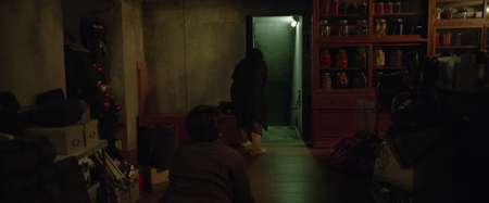 Место ниже подвала — изолированный бункер, где живет муж бывшей экономки. Там нет связи, еды и адекватного водопровода. Естественный свет туда не проникает, поэтому вся цветовая гамма создается за счет верхнего холодного света, который, отражаясь от бетонных поверхностей стен, дает всему бункеру зеленоватый, холодный, болезненный оттенок, цвет одиночества и беспорядка.