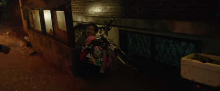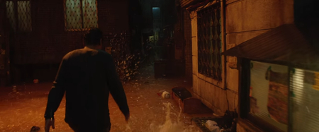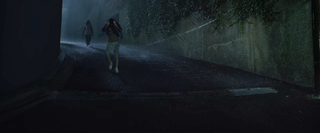 Показательно еще то, что во время затопления их небольшого района фонари освещают улицу тусклым желтым светом. Это символизирует надвигающуюся беду, но еще не случившуюся, так как герои еще не видели, что произошло с их подвальным помещением. Всюду бетон, мусор и канализационные воды, а лампы освещают улицу противными и не сулящими ничего хорошего грязными желтыми лучами.