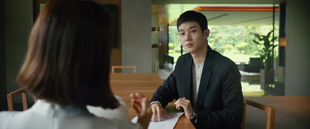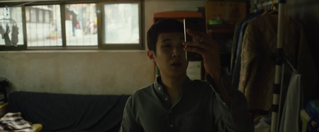 Друг юноши из семьи Ким — интеллигентный парень, который собирается учиться заграницей. Он явно будет классом повыше, поэтому между ними стоит шест зонта — разделяющая вертикальная линия.
