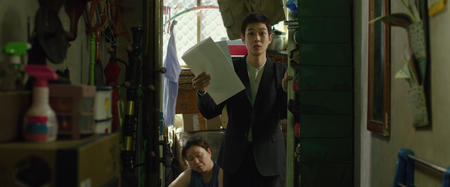 Но даже дом семьи Паков в опасности лестниц, ведущих вниз: оказывается, в их доме есть бункер, в который можно войти через подвал. Там живет муж бывшей экономки, который также находится за чертой бедности и скрывается от кредиторов. Доступ к его жизни происходит через узкие коридоры и целых две лестницы вниз, все дальше от богатой безбедной жизни.