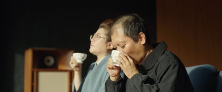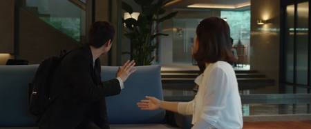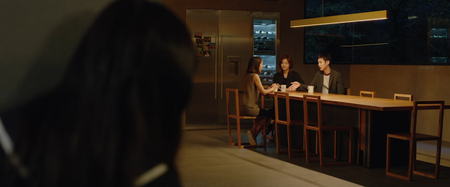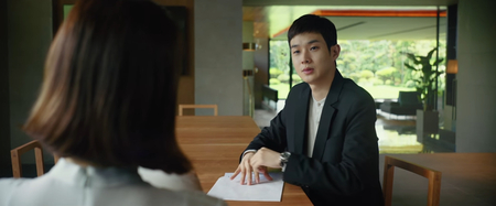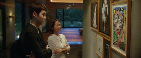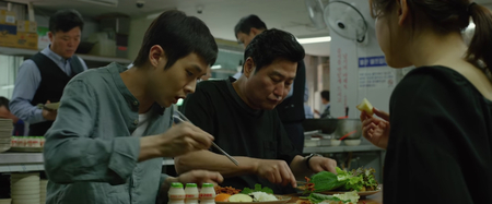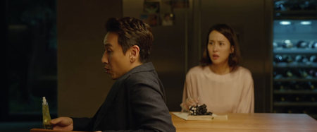 А в некоторые поворотные моменты, такие как разговор о травме сына семьи Пак, линии героев пересекаются и впервые их силуэты переплетаются за счет съемки сцены камерой с разных сторон.