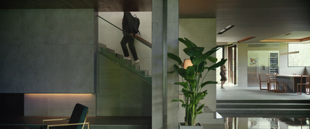 Границы четкие, вертикальные, геометричные. В кадре этого добиваются при помощи самого дома, так как он весь состоит из прямых углов и линий. Безупречная архитектура, идеальный дизайн, все как и положено богатым. Ничего лишнего, все на своих местах. Внутри дома очень много линий.