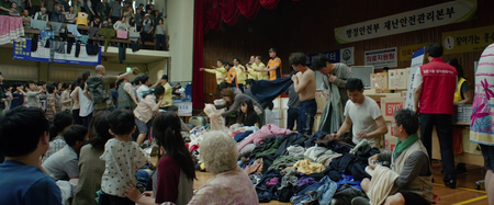До этого при наводнении мистер Ким проходит мимо просящего о помощи соседа, чей дом также затопило. Он машет ему рукой и спешит в свой подвал, так как его беспокоит, что стало с его собственным домом. Ему сейчас не до решения проблем других.
