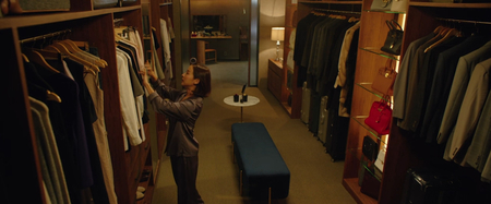 Миссис Пак выбирает одежду из большого гардероба, полного качественной и дорогой одежды. Семья Ким вынуждена выбирать одежду из общей кучи чужих тряпок, где выбирать особо не приходится: бери, что дают. Эти сцены ярко подчеркивают контраст жизни двух противоположных классов в обществе.