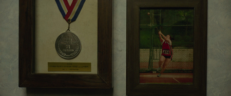 В обоих домах висят грамоты в память о заслугах членов семьи. Они оцениваются по разному, так как даже медаль — и та за второе место, а рядом обыкновенная фотография в рамке. Семья Пак и здесь выглядит более презентабельно: графичные шрифты на грамоте и статная фотография, напечатанная в журнале. Здесь виден статус и власть.