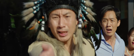 Хотя это был праздник по случаю дня рождения сына семьи Пак, оба главы семейств были одеты в одинаковые венцы из перьев. Они исполняли одинаковую роль: оба должны были понарошку напасть для розыгрыша сценки. Разность положений в обществе сглаживалась такими небольшими моментами, когда семья Ким принимала активное участие в жизни семьи Пак. Особенно это видно под конец фильма, так как прошло некоторое количество времени для сближения. Как физического, так и эмоционального. Между мужчинами нет стекла и линий, они оба сидят в кустах с забавными шапками на голове.