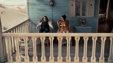 В своей фантазии миссис Ловетт представляет Тодда идеальным джентльменом — он спокоен, ухожен, одет в белый костюм. Но Джонни Депп сохраняет свою мертвенную бледность и отстраненное выражение лица, даже будучи «счастливым». Это создает жутковатый диссонанс: ее кукла Тодда не соответствует реальному, сломленному человеку.
