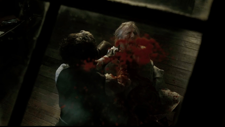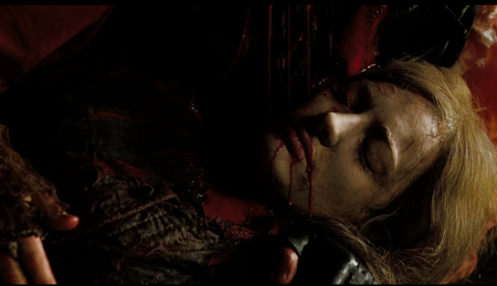 В финальной сцене смерти Тодда кровь капает на лицо его убитой жены, медленно растекаясь по кадру. Это визуализация смирения, символизирует истощение и успокоение главного героя. Кровь здесь не символ мести, а последний, прощальный художественный образ.