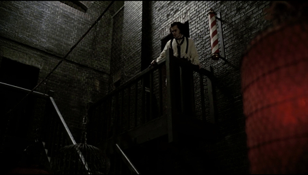 Важнейшим элементом визуального нарратива «Суини Тодда» является поведение камеры в моменты наивысшего эмоционального напряжения главного героя. Когда Суини Тодд погружается в ярость или находится на грани безумия, статичная и часто театрально-постановочная камера сменяется на резкую, динамичную.