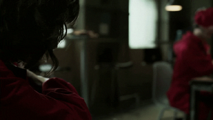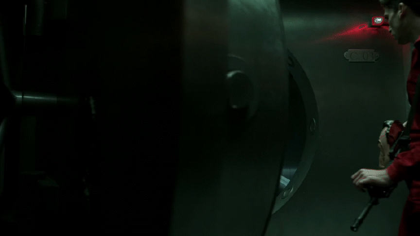 Визуальная система «Бумажного дома» работает не как набор случайных декоративных решений, а как проработанный пакет визуальных сигналов, собранные для того, чтобы сделать из преступления — сопротивление. Униформа грабителей, состоящая из красных комбинезонов и масок Сальвадора Дали, является ключевым узнаваемым маркером айдентики. Этот образ выполняет сразу несколько задач. Во-первых, он мгновенно маркирует «своих» на экране — зритель видит группу как единую структуру, которую легко считывать на любом кадре.