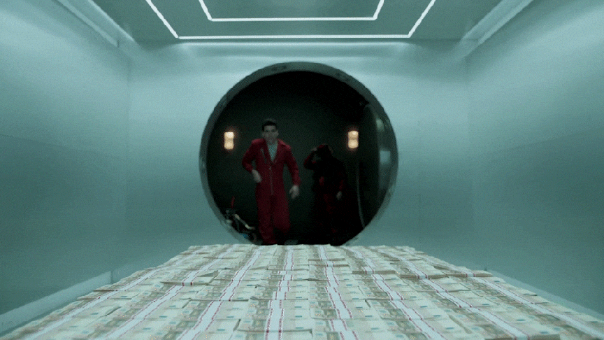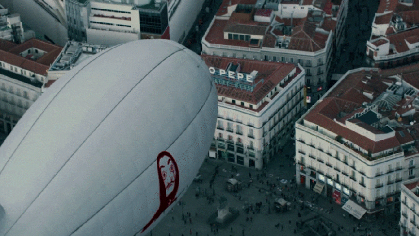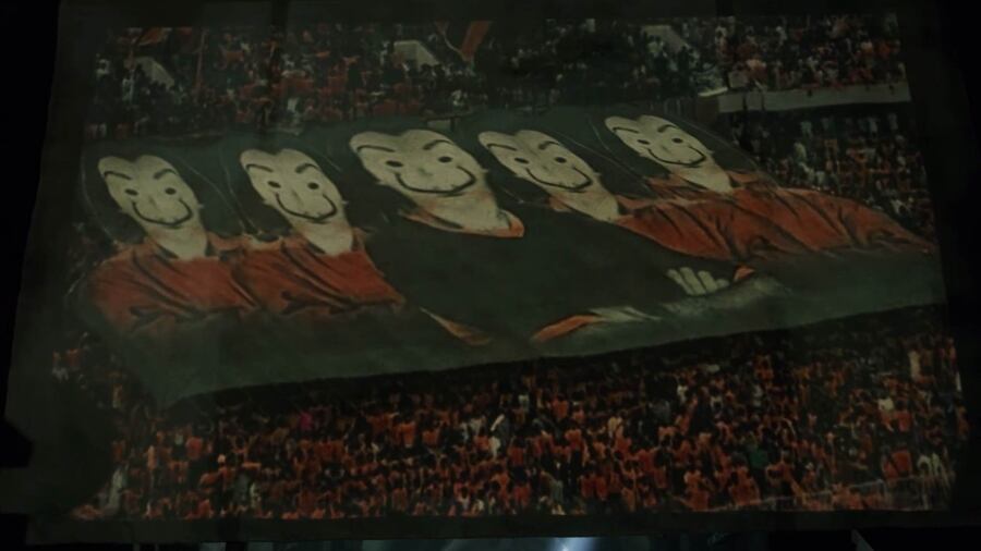 Использование масок Дали становится финальным штрихом в создании айдентики. Дали как образ бунтаря и художника-провокатора перекодирует восприятие преступления. Теперь грабители предстают не как бандиты, а как художники, творящие масштабный арт-перформанс.