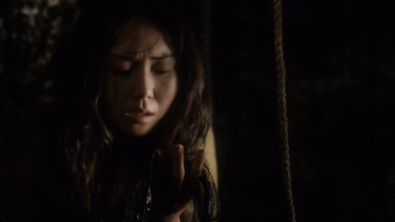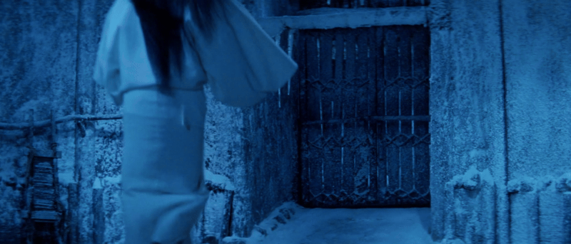 Когда женщина покидает лачугу (в начале) и дом (в конце), она словно плывет по воздуху, при этом очень стремительно, что добавляет еще больше саспенса в её образ. Также Кобаяси использует двойную экспозицию, в целом, частый прием для того чтобы показать призрака, который может проникнуть везде, что опять же сближает Юко-онну скорее с эфимерным юрэй, чем с физически реальным екай.