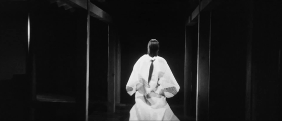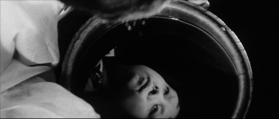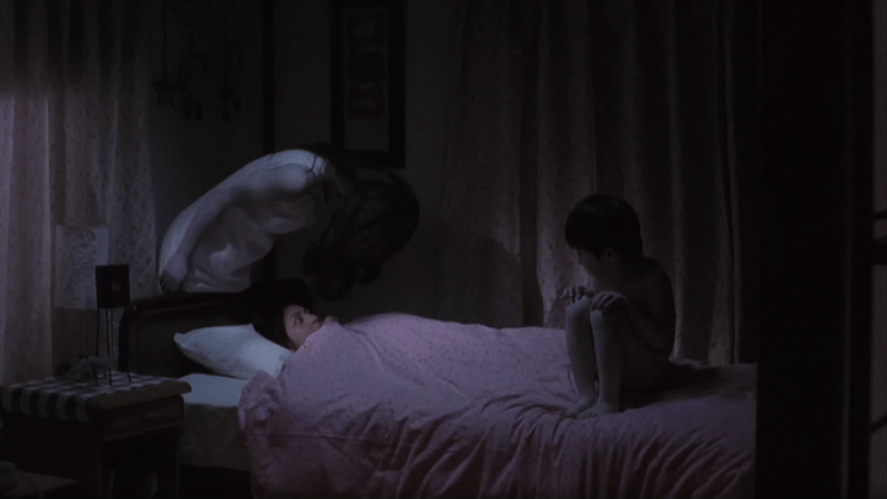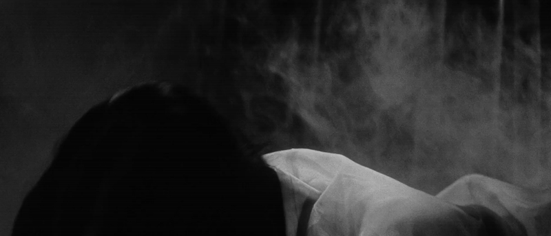 Мстительный дух появляется в кадре всегда достаточно резко, но не как склейка-скример, а с помощью быстрого перевода камеры или стремительного выплывания из-за какого-то предмета. Также стоит отметить, что часто это появление из нестандартных (для кинематографа Японии того времени) мест, таких как потолок, дверца шкафа, сверху ширмы, покрывающей кровать, через отражение в зеркале и даже из-под земли. На мой взгляд этот прием предзнаменование (а может и вдохновение) психологического страха, используемого в J-horror, так как в 50-60 годах образ призрака был все же более классический и спокойный.