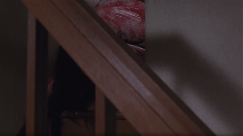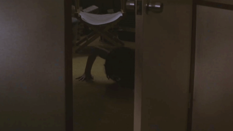 Преследование Каяко кажется ещё более жестоким, потому что оно не подчиняется логике времени и расстояния: она может появиться неожиданно сверху, снизу или из темного угла комнаты, мгновенно сокращая пространство безопасности героев. VHS-эффекты искажения изображения усиливают это чувство непредсказуемости и иррациональности, делая каждое её появление более интенсивным и пугающим.
