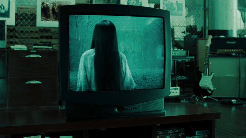 И конечно же — знаменитый образ телевизора; почему героиня вылезает именно из него? На момент выхода «Звонка» телевизор был главной точкой пересечения человека с массовой культурой: он стоял в каждой японской квартире, создавал ощущение «общего медиапространства». Садако буквально вторгается в дом через самую доверенную, бытовую, привычную вещь, нарушая границу между безопасным и опасным. Это переворачивает представление о доме как о защищённом пространстве. «Звонок» использует страх перед тем, что технологии выходят из-под контроля: проклятие теперь распространяется по медиа-каналу, а не через суеверие или ритуал.