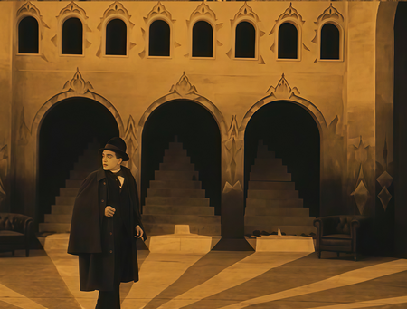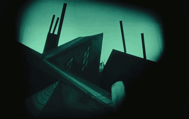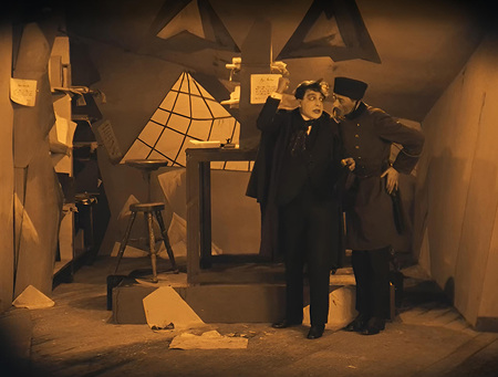 Роберт Вине не просто создаёт в своём кино искажённоё и изломленное пространство — он заранее даёт незнающему зрителю визуальную подсказку к развязке про безумное восприятие мира психически больным Френсисом.