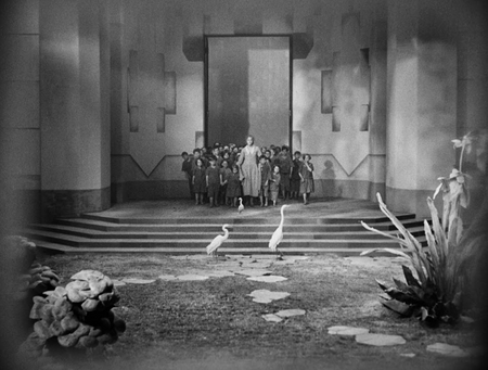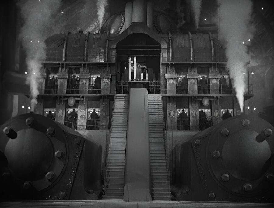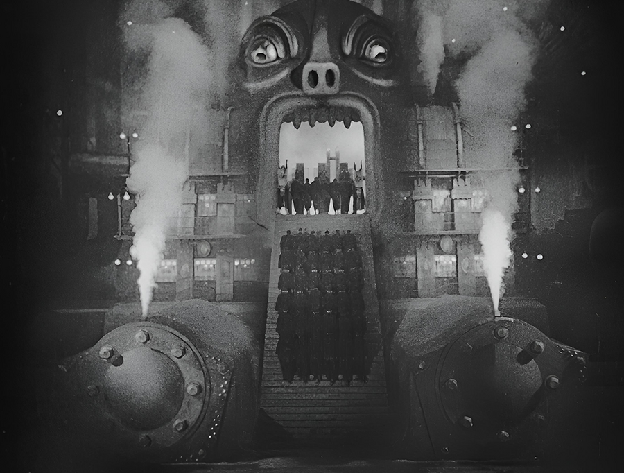 Пожалуй, одно из самых известных произведений Фрица Ланге, интересующее зрителя футуристической вселенной. По-разному стилизованное окружение отражает социальное неравенство, а также предвидит облики современных мегаполисов. Декорации города созданы вручную, съёмочная команда возводила его с нуля. Ланг не искажает привычным экспрессионистским образом, а играет с масштабами зданий, делая их непомерно высокими на фоне людей.