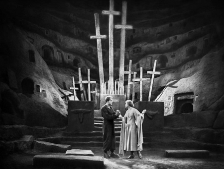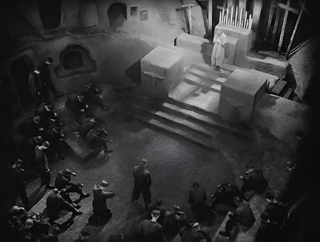 Множество лестниц, колонн и арок создают запутанный путь, ведущий к примирению Верхнего и Нижнего города. Финал фильма показывает, что цель воссоединения всё-таки была достигнута, когда рабочие и власть жмут друг другу руки.