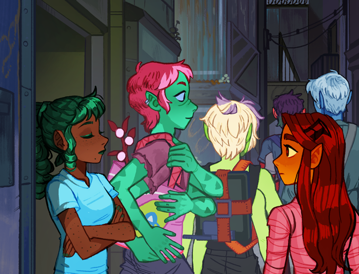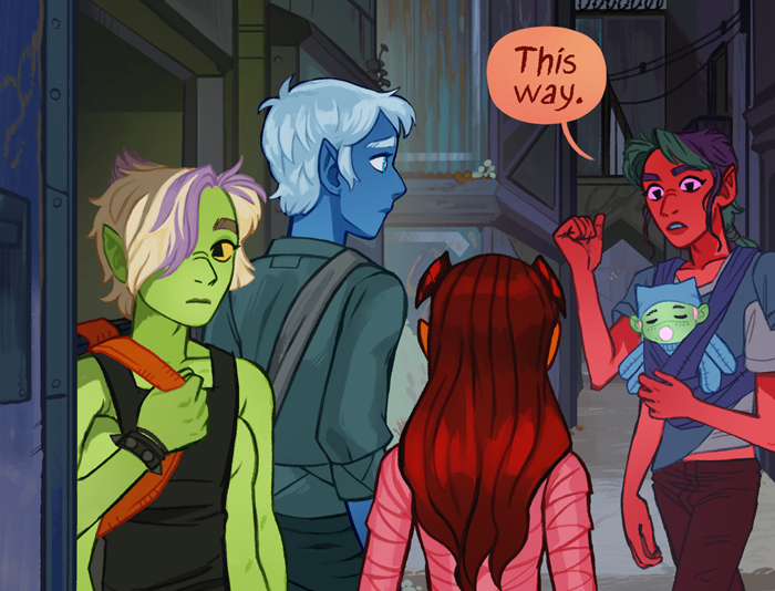 Цвет в комиксе используется не просто как эстетический элемент, а как мощный нарративный инструмент, заменяющий часть текстового описания. Каждому главному персонажу присужден конкретный, насыщенный цвет (например, красный, зеленый, голубой), который формирует его визуальный дизайн. За счет того, что у этих цветов в культуре и медиа сложились устойчивые ассоциации (красный — огонь/страсть, голубой — вода/холод, зеленый — природа, фиолетовый — магия и т. д.), Фус сразу задает визуальную динамику между персонажами, даже если они молчат