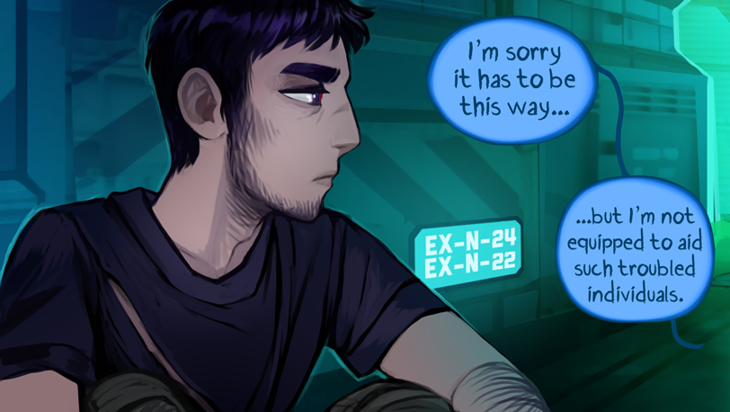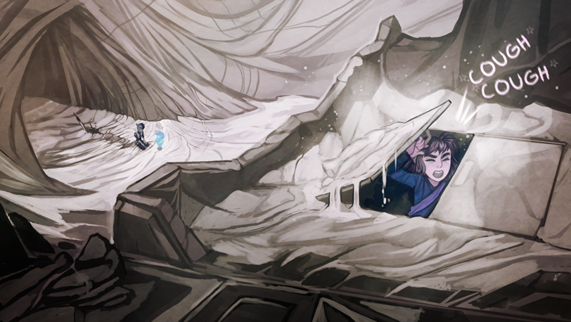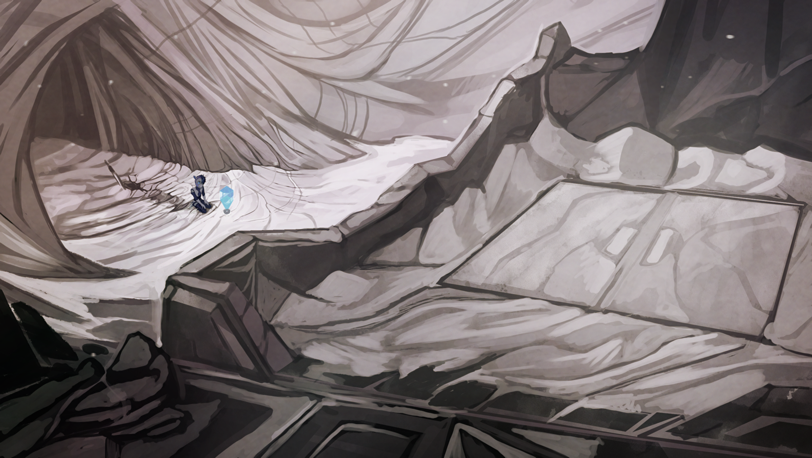 Ключевая особенность композиционного построения фреймов «Ava’s Demon» заключается в отказе от традиционной верстки, характерной как для печатных, так и для большинства веб-комиксов. Читатель видит только один фрейм фиксированного размера (в начале 4:3, 16:9 в более поздних главах), переход к следующему осуществляется по клику мыши. Такой подход максимально уменьшает пространство между фреймами на уровне восприятия, заменяя его единым экраном. Это не просто имитация киноэкрана, это диктовка темпа повествования: автор полностью контролирует, в какой последовательности читатель увидит кадры, тем самым контролируя, сколько внимания читатель уделяет каждому моменту. Взгляд читателя всегда прикован к одной области, а не блуждает по целой странице комикса