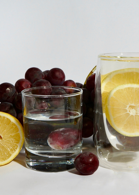 Для осуществления идеи я использовала стеклянные стаканы, наполненные водой и яркие фрукты и овощи, чтобы передать контраст и лучше увидеть искажение форм.