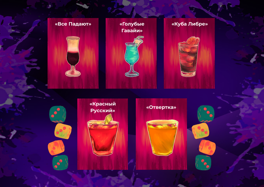 На основе старого проекта настольной игры были созданы брендинг, айдентика и промо-иллюстрации для гибрида бара и клуба настольных игр. В новом проекте сохраняется яркая цветовая палитра и названные позиции в меню.
