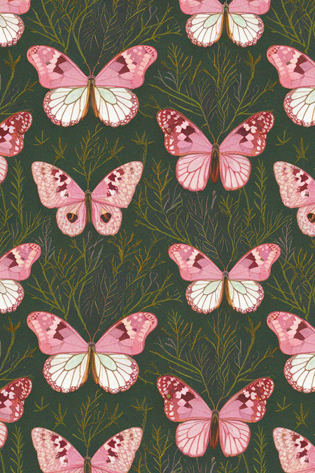 Prompt: butterflies, needles, Japanese pink and green colors, pattern, illustration Programs: Ideogram