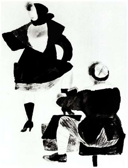 Виртуозная работа с пятном, несмотря на разнообразие текстур, паттернов, заливок, произведения серии смотрятся очень целостно и в то же время «живописно», «живописно» настолько, насколько об этом можно сказать о черно-белой графике, пропущенной через призму кубизма.
