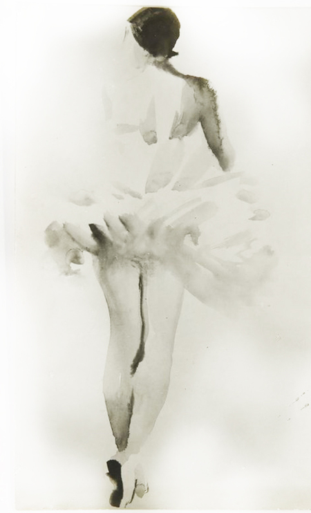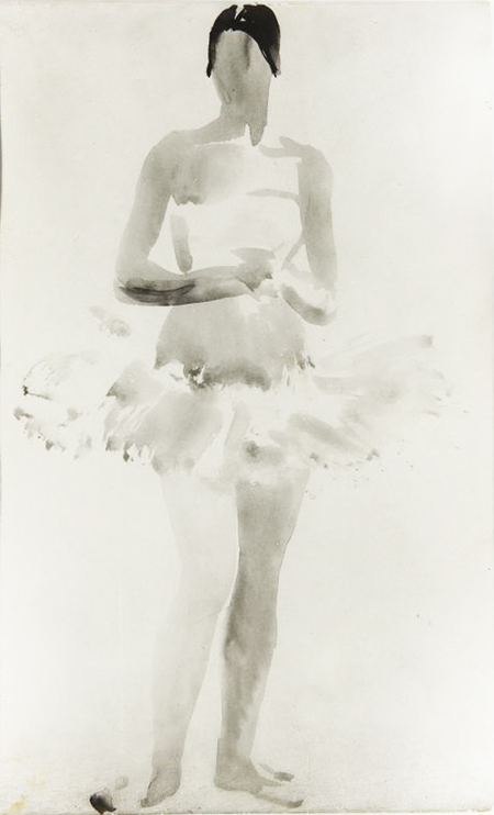 Продолжение этого замысла легко прослеживается в последующей серии «Танцовщица». Работы наполнены невероятной легкостью, балерина буквально пропускает через себя свет, которым является нетронутое пространство листа. Ее пачка парит, движения и позы становятся верхом изящества, танцовщица очаровывает зрителя. При всей своей внешней эскизности, «Танцовщицы» являются точно продуманной законченной серией: тонкие грани тоновых сочетаний, отношение масс, выверенная композиция — все это не вызывает у зрителя не единого сомнения.