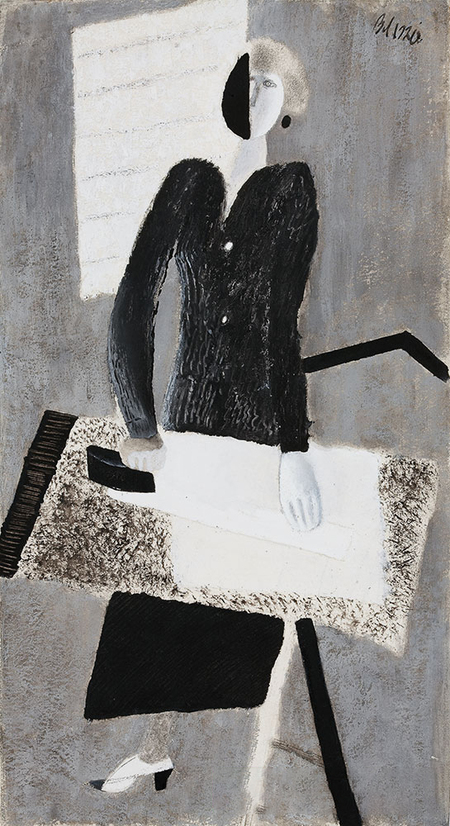 Хотелось бы обратить внимание на это точное диагональное движение работницы в пойманное художником, в столь абстрактном ее запечатлении.