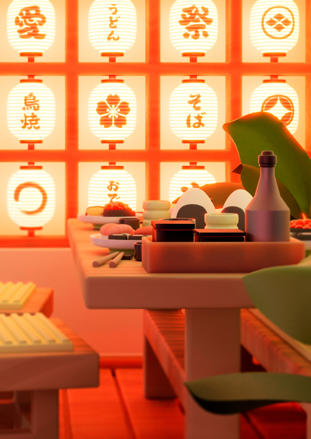 Собирательный образ японского ресторанчика вдохновлен моей поездкой в Японию и впечатлениями от нее.